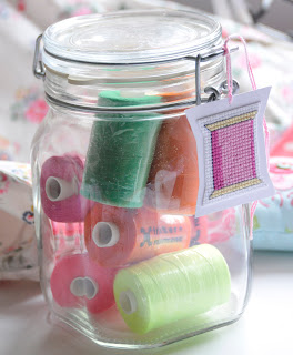 Like this sewing themed project featured in January 2011 Crafts Beautiful magazine - this page shows a card for a stitchy friend. The small cross stitch cotton reel is fixed by a length of embroidery thread and swings about, and the larger cotton reel tag can be used as a gift tag on all sorts of presents.