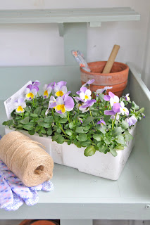 Planting: one of my most favourite flowers - violas. I picked these up last week - they have a rose scent and are called Rose Wing ...so beautiful and fresh and delicate, I love them massed together and try to plant a few close together to keep that effect...