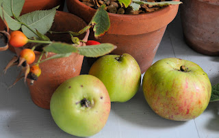 ....gathering a few windfall apples on the way as I don't like to see them being wasted, however marked and misshapen they may be....
