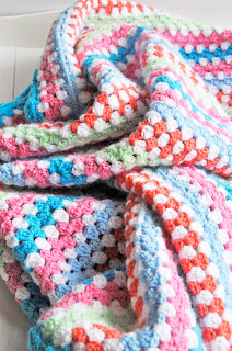 It still feels summery here on this long bank holiday weekend....though there are little hints of autumn in the air i am not taking any notice of them yet ;).............i showed you a little peek of this latest granny stripe blanket a while ago and now it is finished........